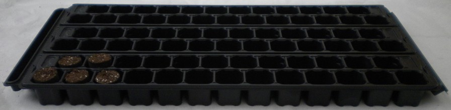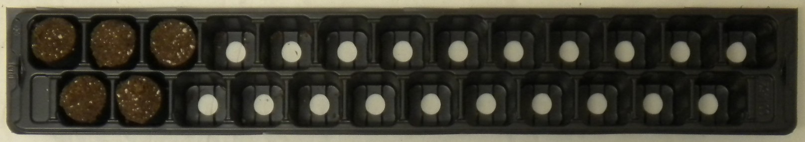 Motte de multiplication disposée dans un plateau thermoformé spécifiquement conçu pour la taille de la motte. Plateau « modulo » de 25 alvéoles avec motte de 3,2×3,5, spécifique pour les multiplicateurs horticoles.